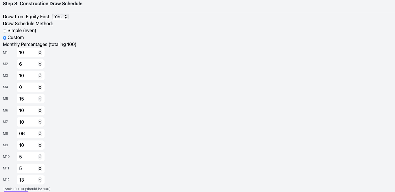 Utilize simple construction draw schedules to spread evenly across each month or customize each monthly draw as needed.